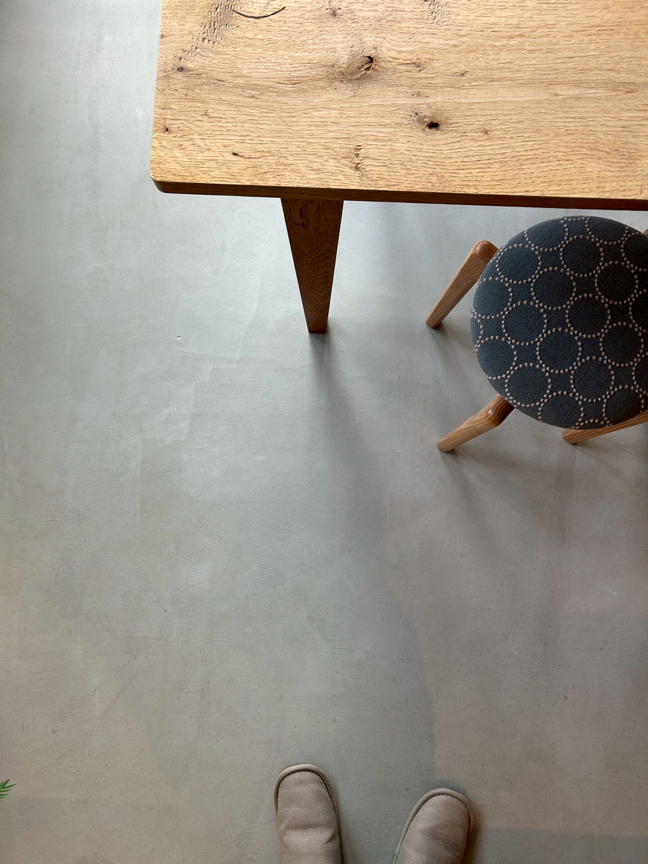 先日2年点検に行ってきました。契約書の巻末にも記載してるのですが2年点検時、仕上(クロス、左官、塗装)については無償で補修させていただいてます。理由は木造は完成後数年は様々な要因で割れたり、動いたりします。それに伴い仕上材も割れたりするからです。とはいっても私たちも使う素材を変えたり、下地の作り方を工夫したり試行錯誤はしています。それもあってか今回は補修箇所が少なく、床のモルタルもいい感じでした!